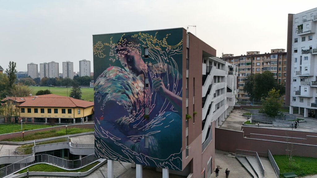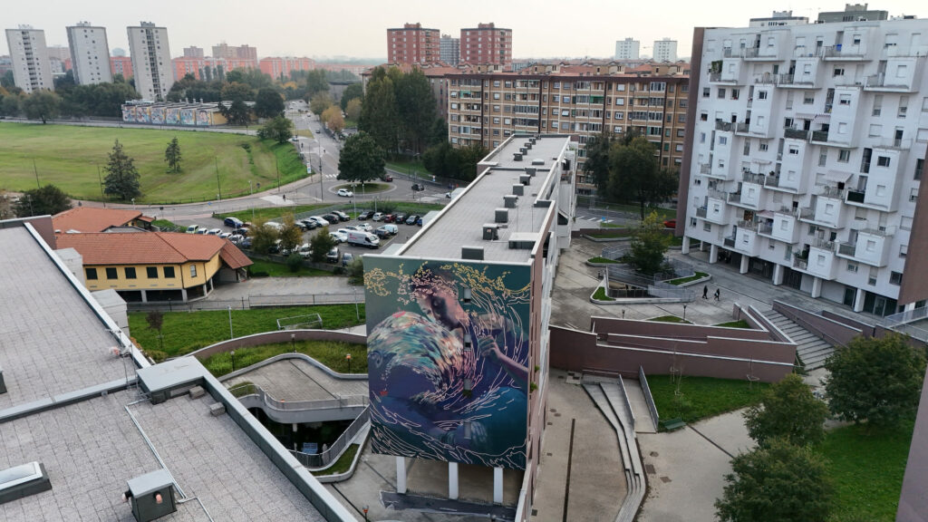 L’artista argentina ha realizzato il terzo murale della rassegna. Il mare come metafora della comunità: come ogni ecosistema marino vive dell’equilibrio tra specie diverse, così il quartiere può crescere solo se ogni voce, ogni persona, trova spazio e riconoscimento.