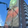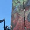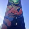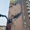 L’opera di Bastardilla – artista anonima italo-colombiana che esordisce nel 2005 sui muri di Bogotá – dal titolo “De parvis grandis acervus erit” (dalle piccole cose si formano le grandi) pone al centro della scena una bambina raffigurata come un gigante che distrugge i carri armati e porta su di sé la fatica di bruciare le mura della prigionia, dell’apartheid, dell’umiliazione.