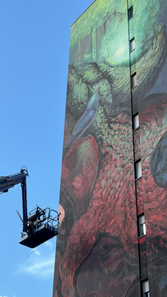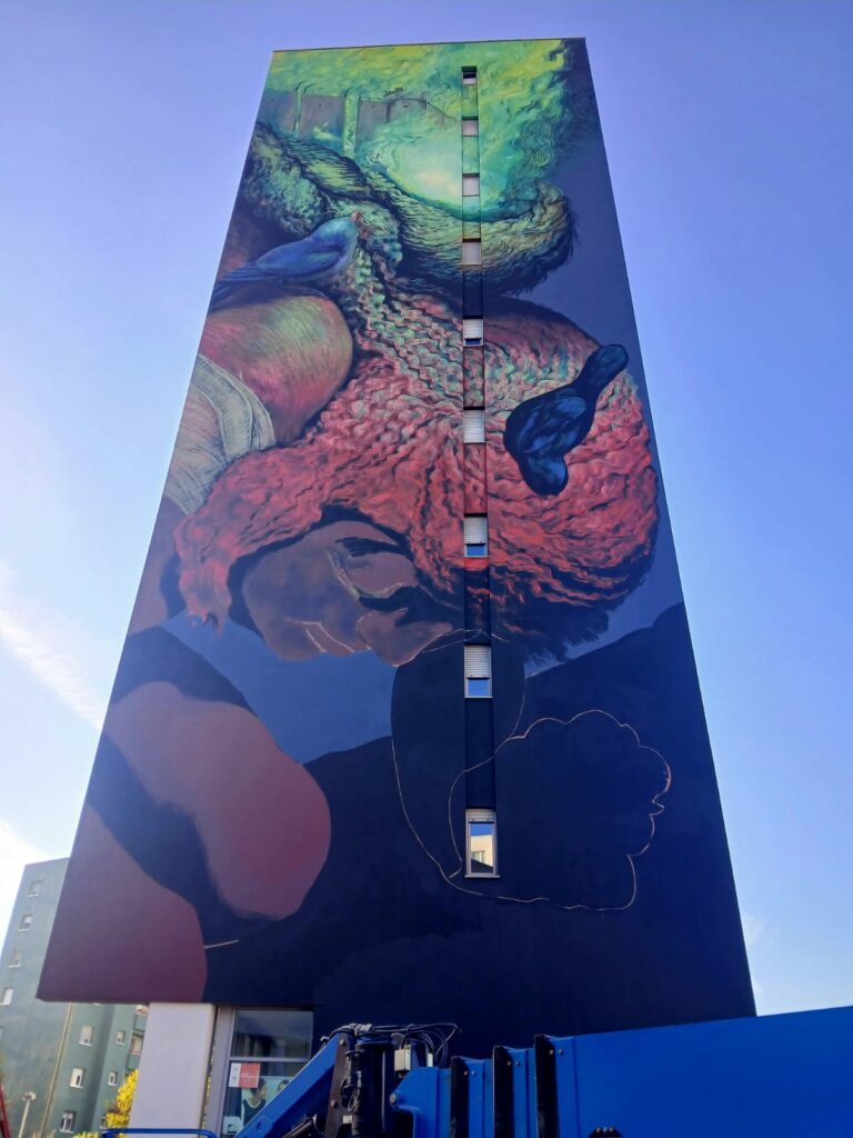 Porta con sé anche un nido e aghi e fili che ricuciono le macerie, tra resistenza e speranza. La bambina è così un gigante pronto a rialzarsi grazie alla memoria e alla dignità di tutte le piccole cose di cui è fatta.