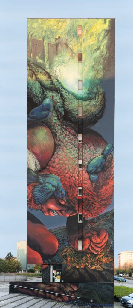 L’opera è un elogio alla straordinaria potenza dell’infanzia, capace di risollevare, nel gioco, l’umanità dalla brutalità dei poteri che stanno distruggendo la terra. Figure minuscole, quasi invisibili, ricostruiscono il tessuto delle storie e del loro futuro, in cui non c’è spazio per l’oppressione e la guerra.